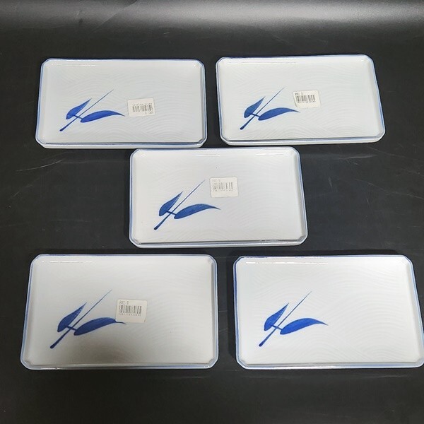 - M73 【未使用】角皿5枚セット 20㎝幅 笹柄 料亭 和食 刺身