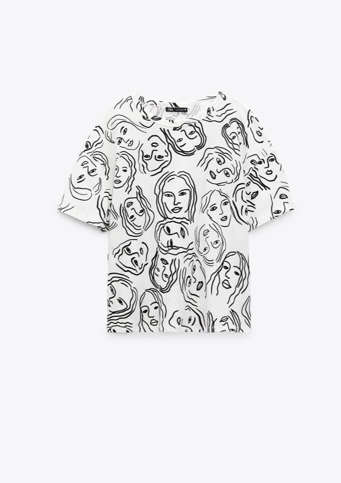 - /[ZARA ザラ プリントTシャツ 柄 コットン ドロップショルダー 洗濯済み 匿名発送