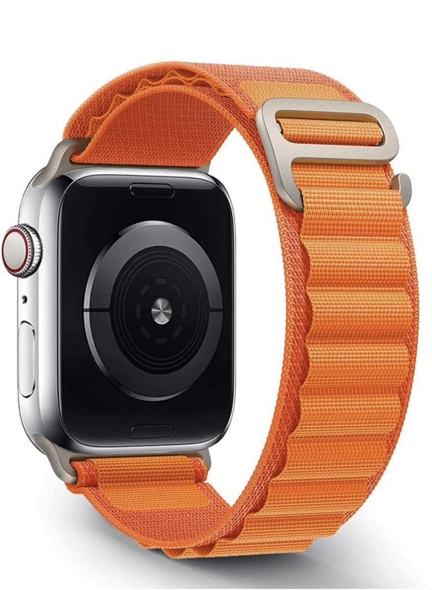 > アルパイン ループコンパチブルアップルウォッチバンド42/44/45/49mmチタン製テキスタイル ウーブン ループ GHook 全シリーズ対応オレンジ