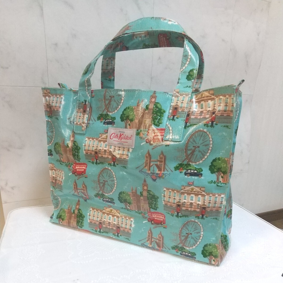 - キャス・キッドソン Cath Kidston LONON トートバッグ マザーズバッグ ブルー ロンドン街風景柄 大容量