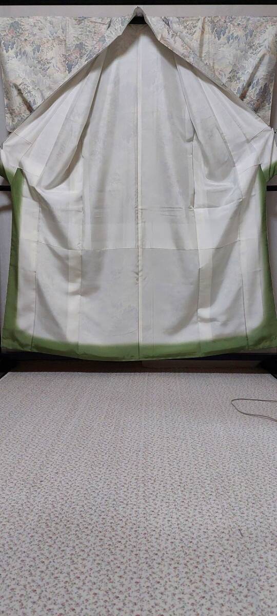 > 【桐輪】白大島紬☆送料無料*逸品物*仕付け糸付{正絹*本場奄美泥*白大島紬}身丈162-裄64.5*多色糸.9マルキ経緯絣織の洛外文様*№4182