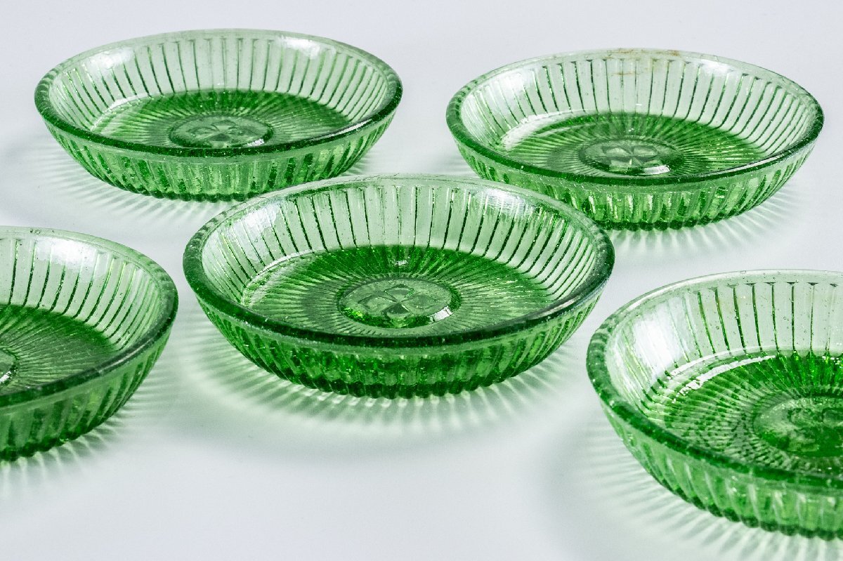 - 【うつわ】 和物アンティーク プレスガラス 小皿 5客 昭和初期 E422 バラ売り可能です 和食器 古美術 古玩 陶芸 日本料理 懐石 料亭 茶道具
