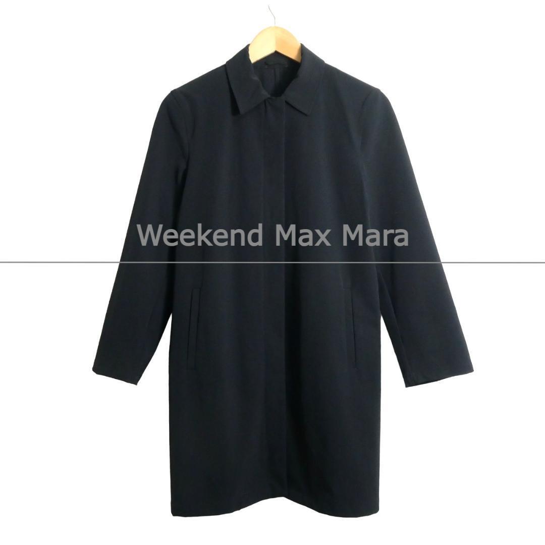 - 美品 訳あり Weekend Max Mara ウィークエンドマックスマーラ サイズ36 ストレッチ ロング丈 ジップアップ ステンカラーコート 黒 ブラック