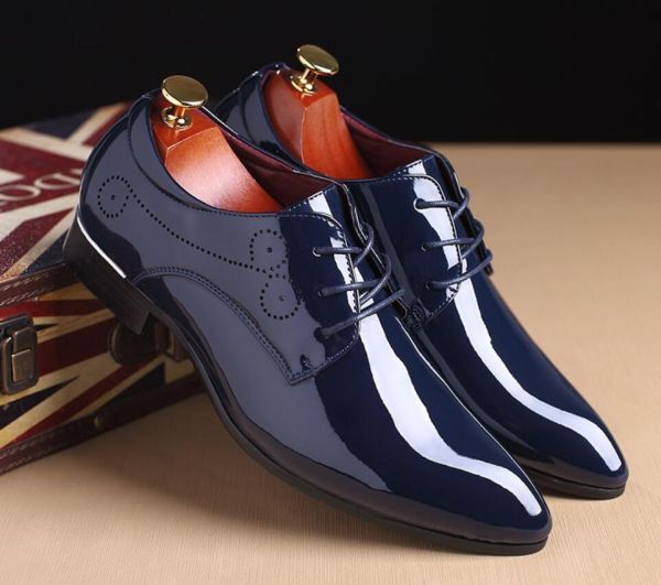 - 人気推薦 24cm~28cm選択 ドレスシューズ メンズ 革靴 レースアップ パーティー エナメル ビジネスシューズ 大きいサイズあり / ブルー