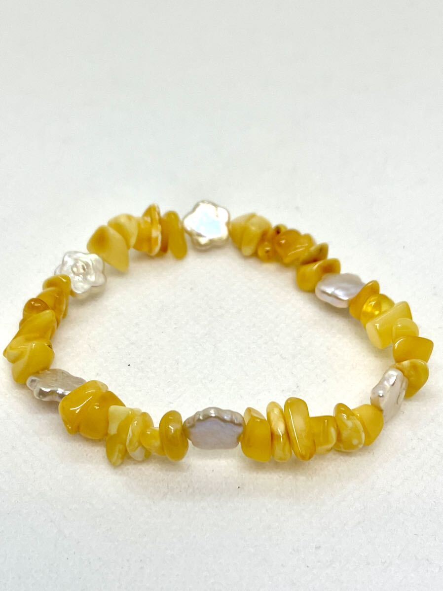 > 【新品】リトアニア産コハクブレスレット*淡水パール*ミルキーコハク*アンバー*天然石 *琥珀 *天然石ブレス *パワーストーン *星形