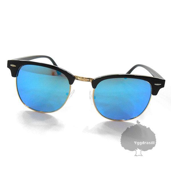 > YGG★新品 偏光 レキシントン サングラス 黒×青 ブラック ブルー ブロー型 ミラー クラシック クラブマスター ビーチ 海 ドライブ