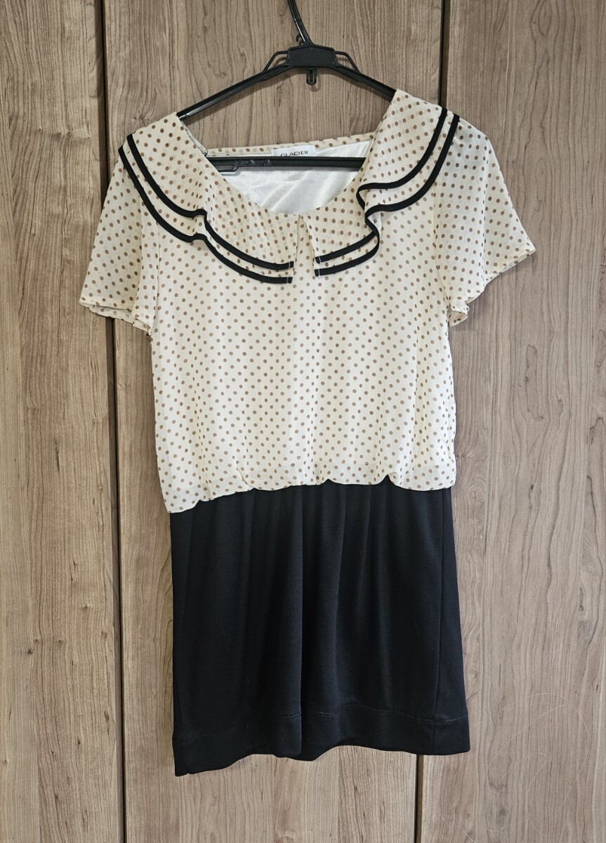 - レディース★ドット柄ひざ丈半袖ワンピース★サイズM