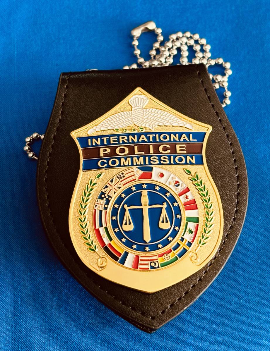 - ポリスバッジ レプリカ アメリカンポリス INTERNATIONAL POLICE COMMISSION バッジホルダー付