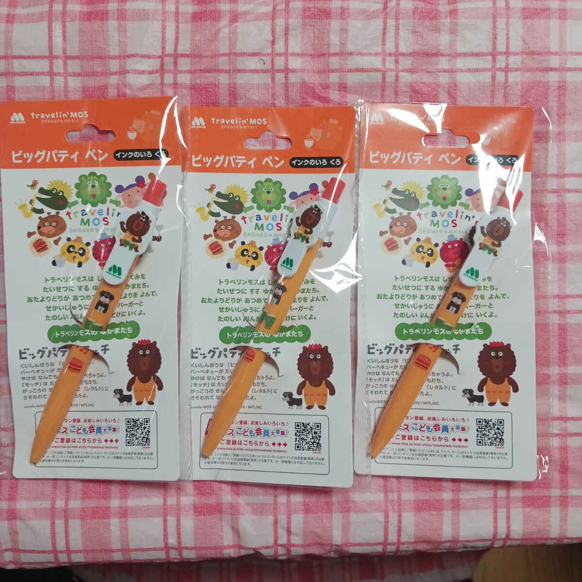 - モスバーガー ワイワイセット ビッグパティペン ノベルティ 新品未開封 3点セット ビッグパティ ペン ボールペン 景品 トラベリンモス