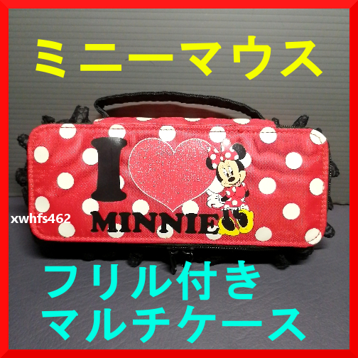 - 新品即決 Disney ミニーマウス フリル付き マルチケース I LOVE MINNIE ペンケース メイク 手さげ ポーチ クラッチバッグ 小物入れ zak