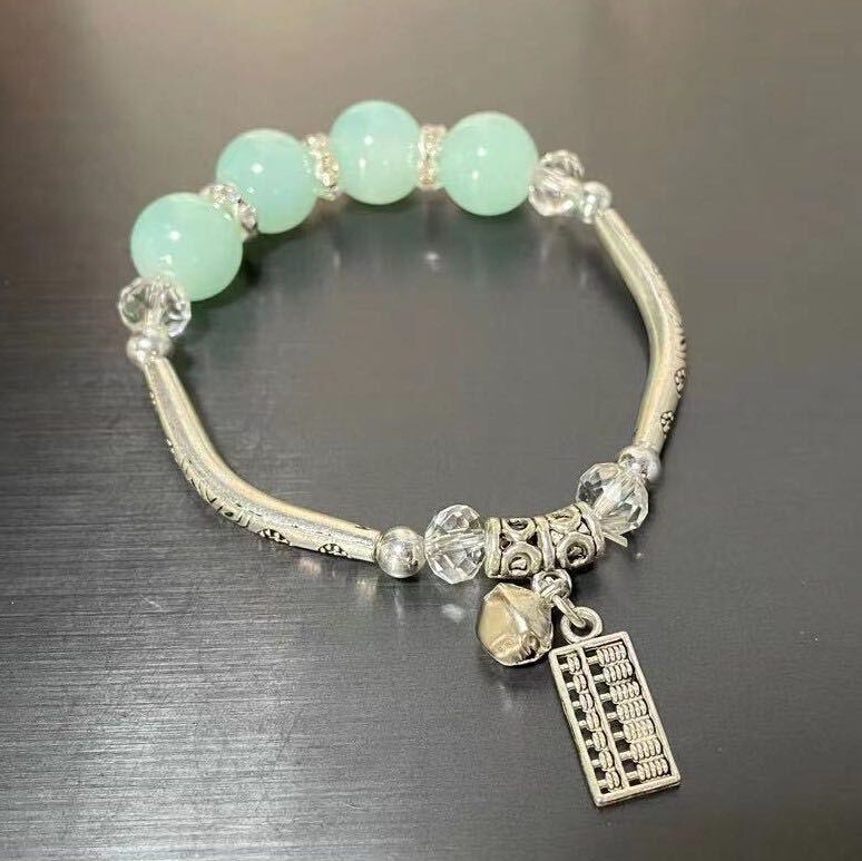 - 天然石ブレスレット カット水晶 クリスタル パワーストーン 天然石 ミャオシルバー アクセサリー 小物ファッション 水色 浄化 幸運