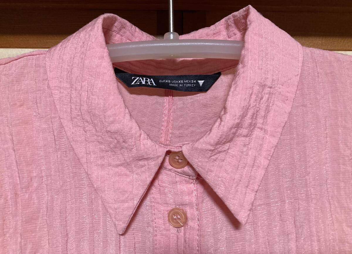 - スタイリスト御用達商品 ZARA サーモンピンクカラー ブラウス バック開き ラメ感素材