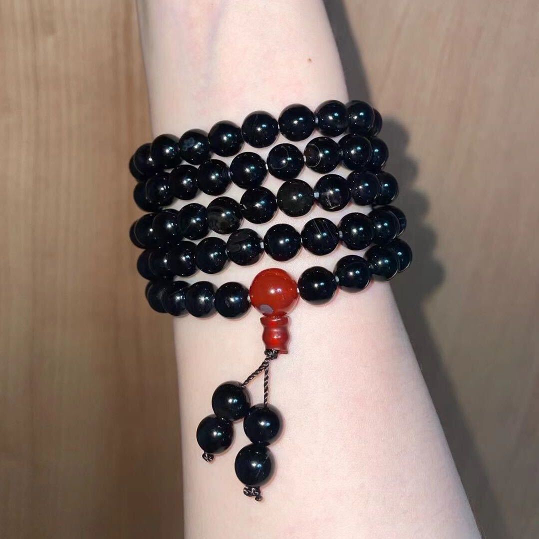 > ブラックオニキスブレスレット 108珠 ネックレス 魔除 天然石 8mm アクセサリー 小物ファッション 男女兼用 パワーストーンアクセサリー