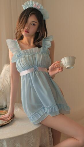 - コスプレ衣装 誘惑 幻想 シースルー メイド服 ワンピース・ショーツ・髪飾りセット ドレス ミニスカート コスプレ ナイトウェアナイロン他