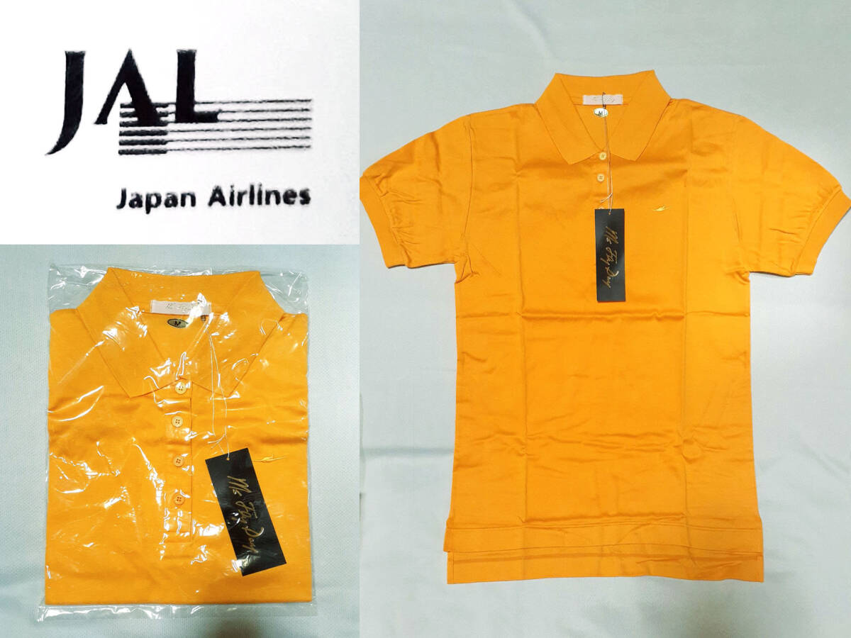 > 未使用 JAL ポロシャツ イエロー Ms FLY DAY 黄色 飛行機 刺繍 90年代 旧ロゴ 紙タグ/ビンテージ派手カラフル小物ファッション原色ゴルフ夏