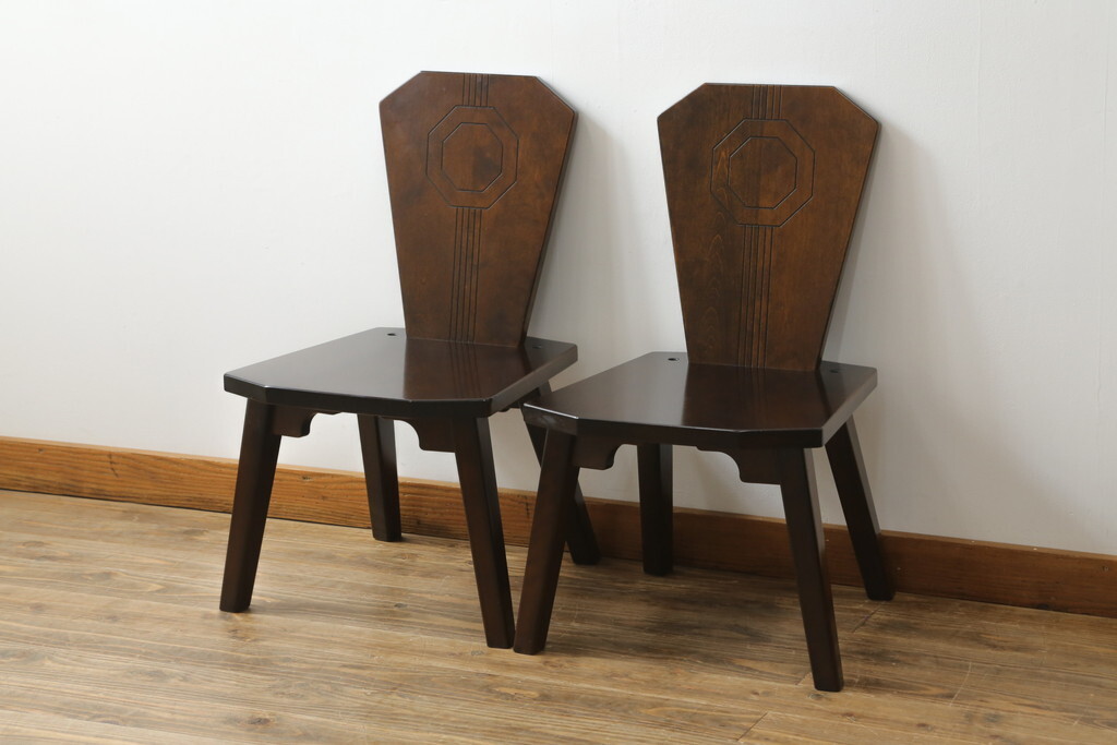 > R-075436 中古 廃盤モデル 星野民芸(星野民藝) 桜材 個性的なデザインが存在感を放つダイニングチェア2脚セット(板座チェア、椅子、イス)