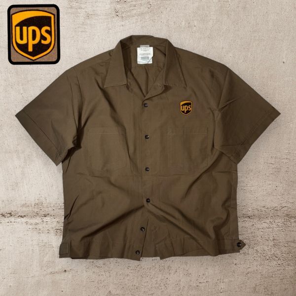 > ★UPSワッペン★TWINHILL 半袖ワークシャツ sizeL ブラウン系 サイドアジャスター 比翼ボタン(下部) 古着 クリーニング プレス済み w1553