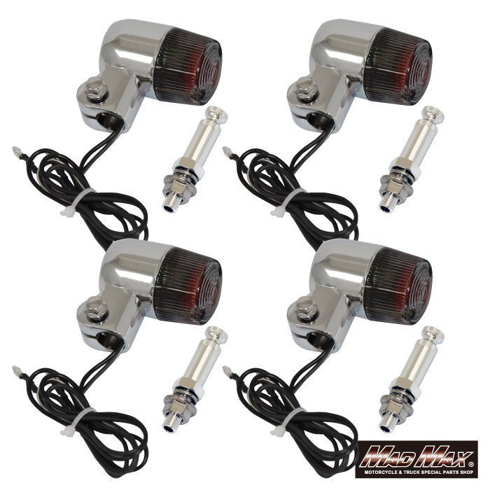 - 汎用 丸形ミニヨーロピアンウインカー シルバー/スモーク M10x73mmアルミ取付ステー 4個SET/ゼファー 400 χ 750RS 1100【送料800円】