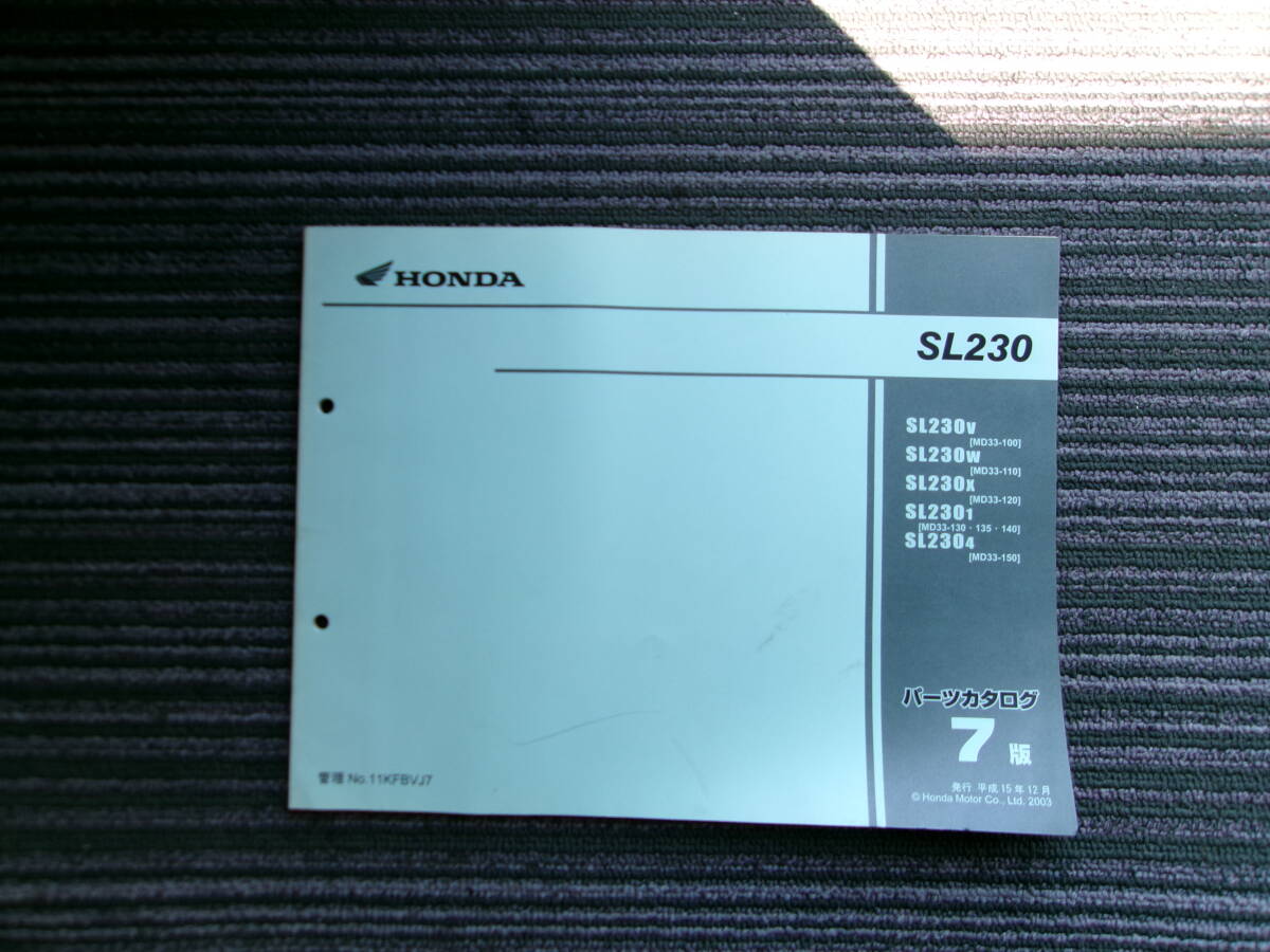 - ホンダ SL230パーツリストSL230V/W/X/1/4(MD33-1000001~)7版