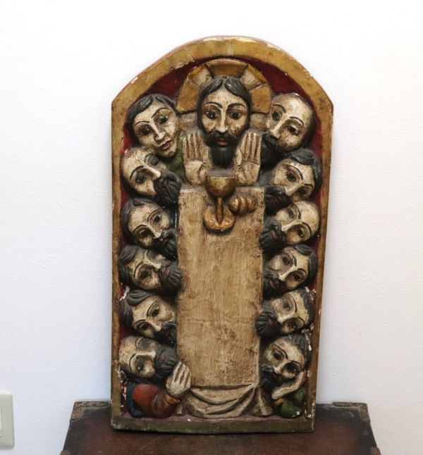- とても古そうな木彫 キリスト 壁掛 イコン 西洋アンティーク n602