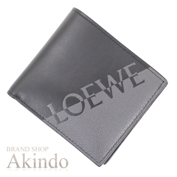 > 【新品】LOEWE ロエベ 財布 二つ折り ブラック グレー 黒 メンズ バイフォールド コインウォレット レザー C314302X01