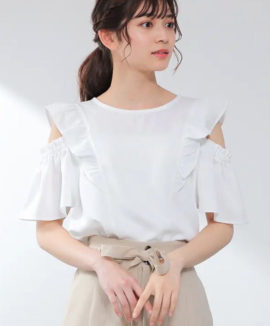 - フリル肩開きブラウス