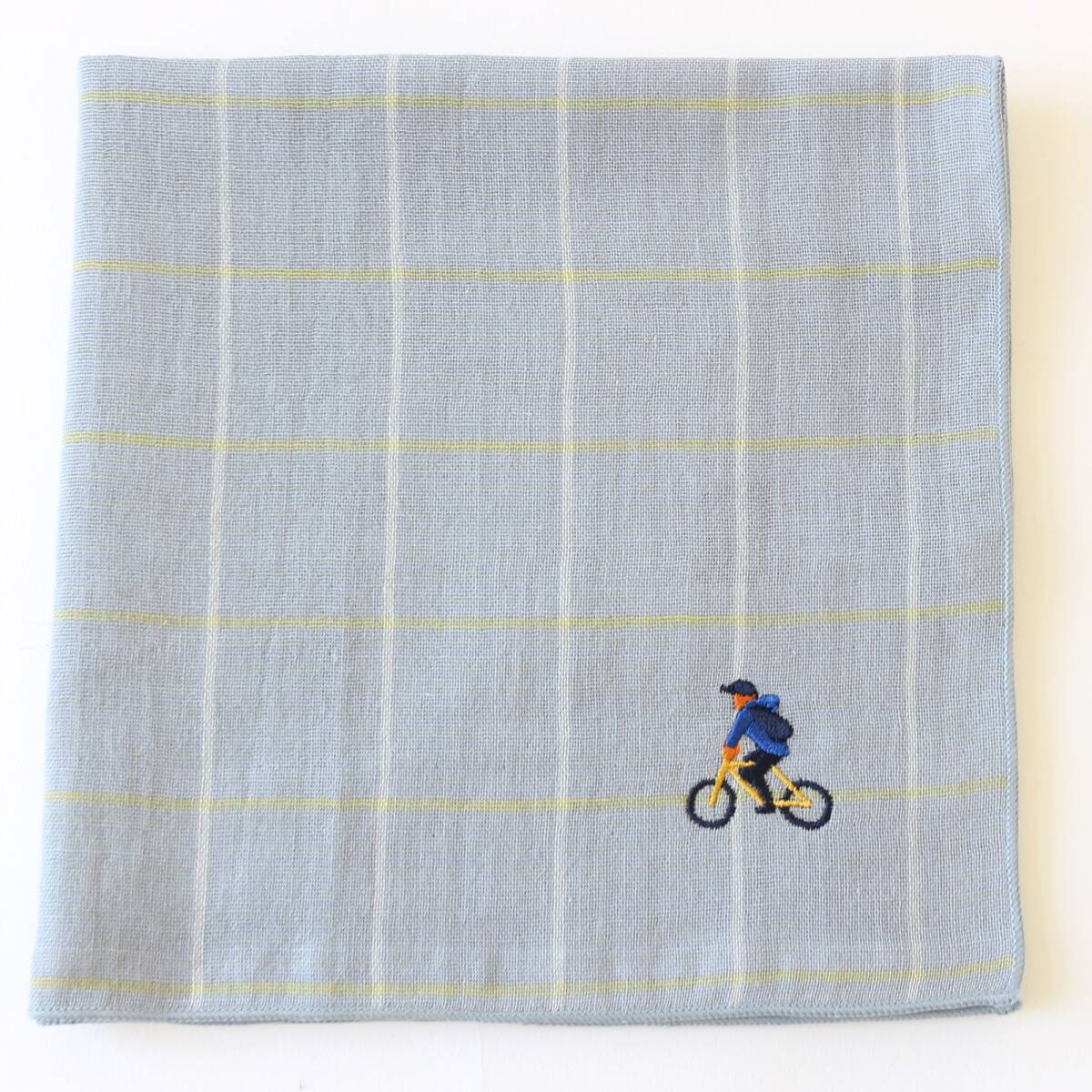 - ハンカチ プレゼント ガーゼハンカチ ハンカチギフト 日本製 おしゃれ かわいい 自転車 刺繍 サイクリスト 綿 コットン 100% ダブルガーゼ