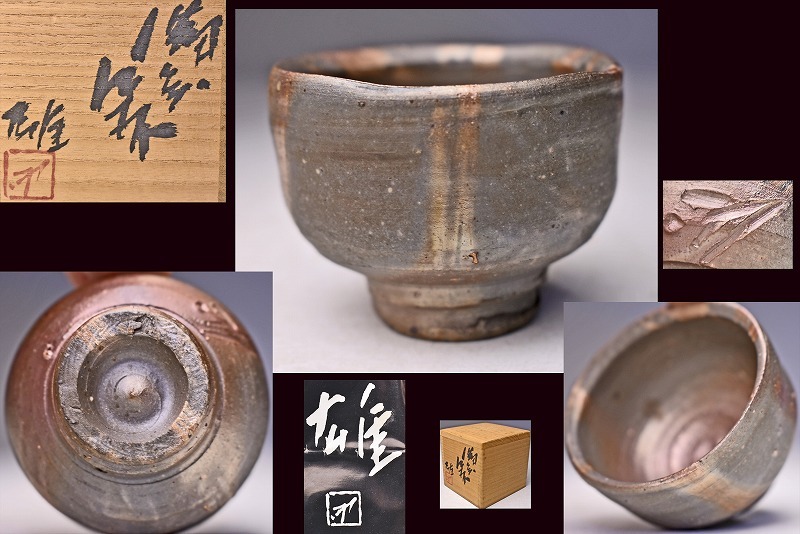 > 藤原雄 ★ 備前ぐい呑 ★ 共箱栞 ★ 上作 ★ 銀化 ★ メタリック感 ★ 人間国宝 ★ 藤原啓 子息 ★ 藤原和 の父 ★ 酒器 酒杯