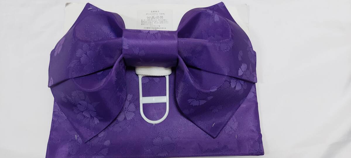 - 【桐徳】浴衣結び帯*紫色地*桜の花*即決品*未使用品*美品{化繊地*蝶々結び*浴衣帯}*紫色地*桜の花.地紋*№6682