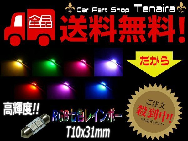 - 12V T10×31mm RGB LED ゆっくり変化 レインボー SMD 七色 マップ ラゲッジ フットランプ ナンバー灯 室内灯 ルーム球 メール便送料無料/6