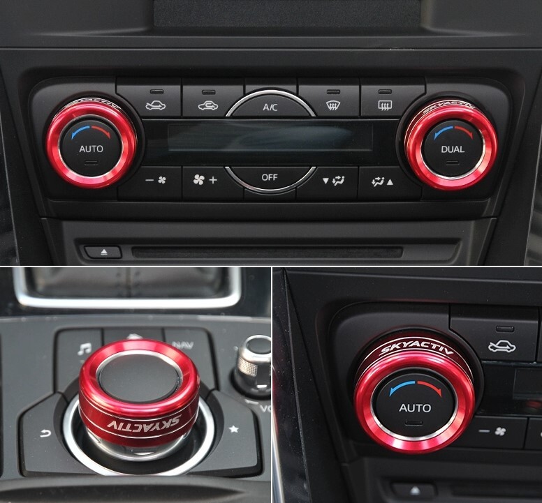 > デザイン性UP♪ レッド エアコン ダイヤル カバー アテンザ セダン GJ 系 GJEFP GJ2FP GJ5FP 20S 25S XD Lパッケージ プロアクティブ
