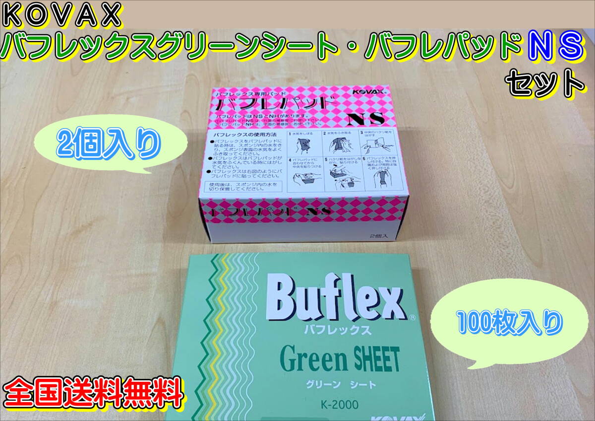 - (在庫あり) KOVAX バフレックスグリーンシート 1箱(100枚入)・バフレパッドNS 1箱(2枚入)セット 自動車補修 研磨 水研ぎ 送料無料