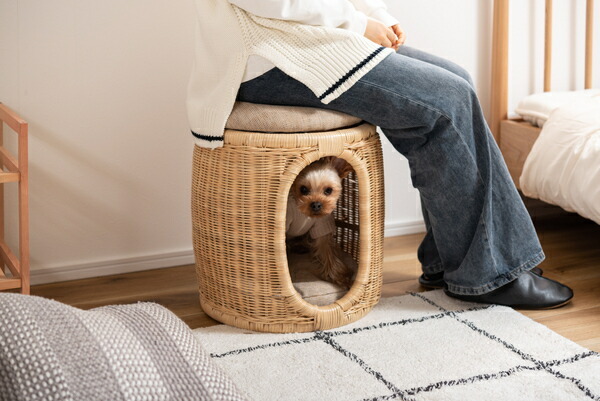 - 【ペットスツール】 ペット スツール 天然木 ラタン 籐 小型犬 猫 収納 ナチュラル シンプル おしゃれ クッション 高さ43cm