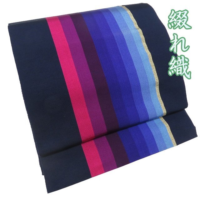 > 名古屋帯 なごや帯 中古 リサイクル 正絹 カジュアル 仕立て上がり 全通 綴れ織 マルチカラー 多色 金 きもの北條 A1078-10