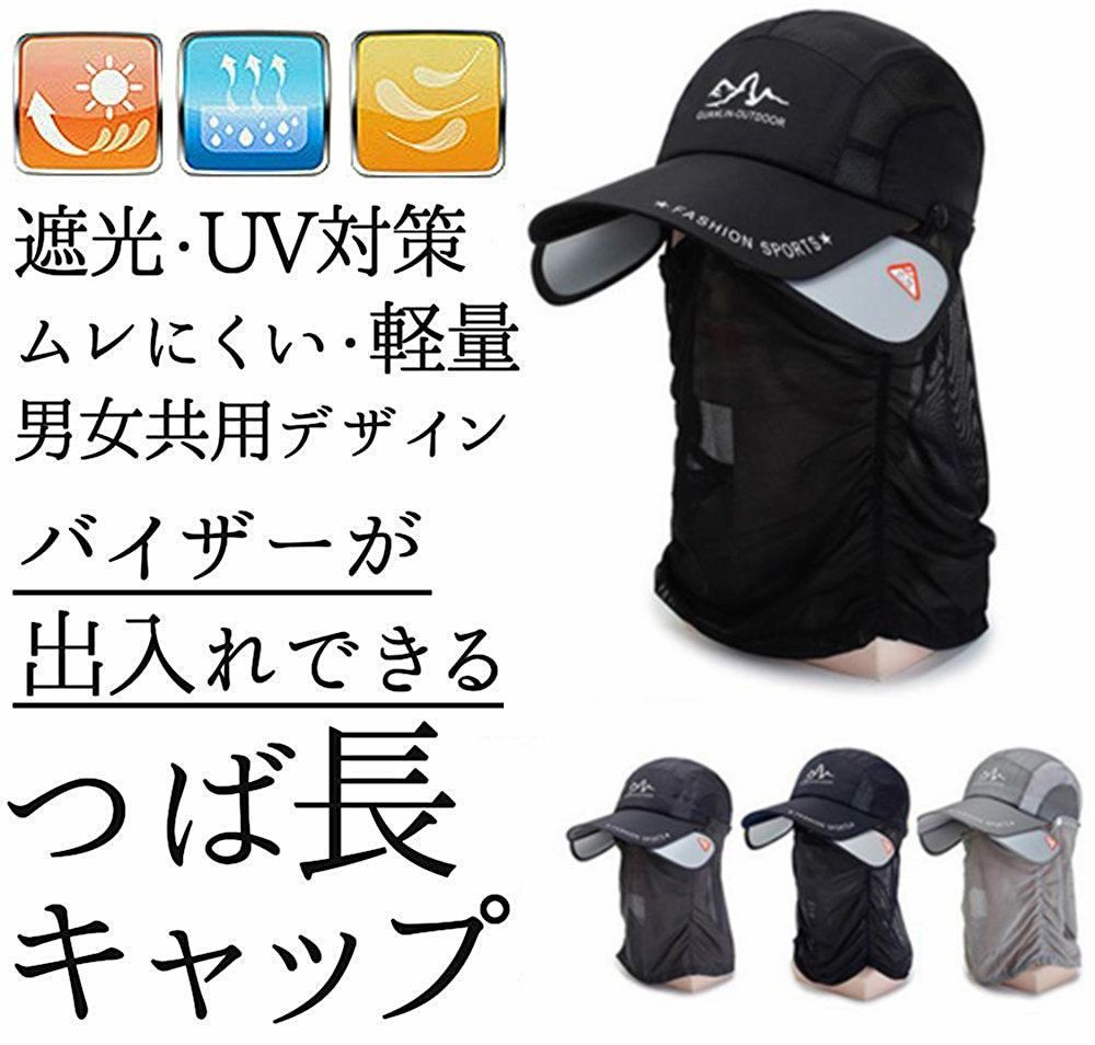 - 帽子 日よけ帽子フェイスカバーUVカット キャップ スポーツ サイドバイザー付き