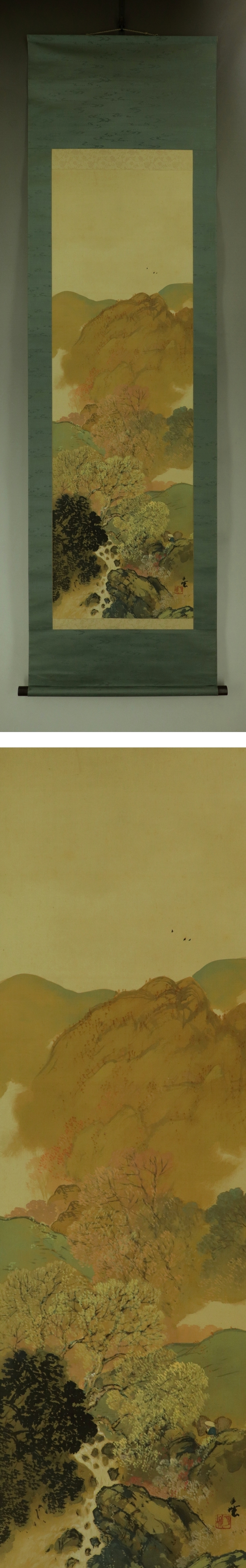 - 名品【模写】森月城【秋谿帰樵図】◆絹本◆共箱◆掛軸 t08039