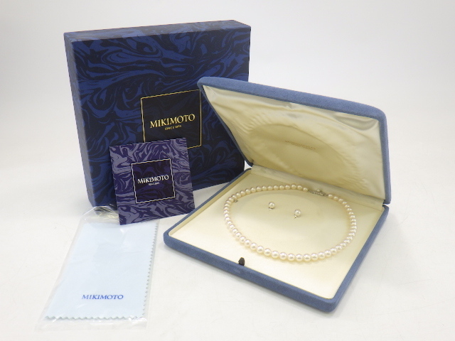 > h5F004Z30 MIKIMOTO ミキモト 真珠 パール K18刻印 ピアス M/SIL刻印 ネックレス 2点セット ケース・箱付き