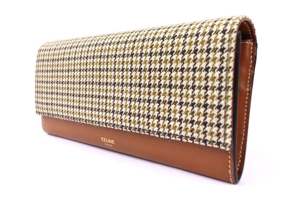 - セリーヌ フラップ型長財布 キャンバス レザー ブラウン 長財布