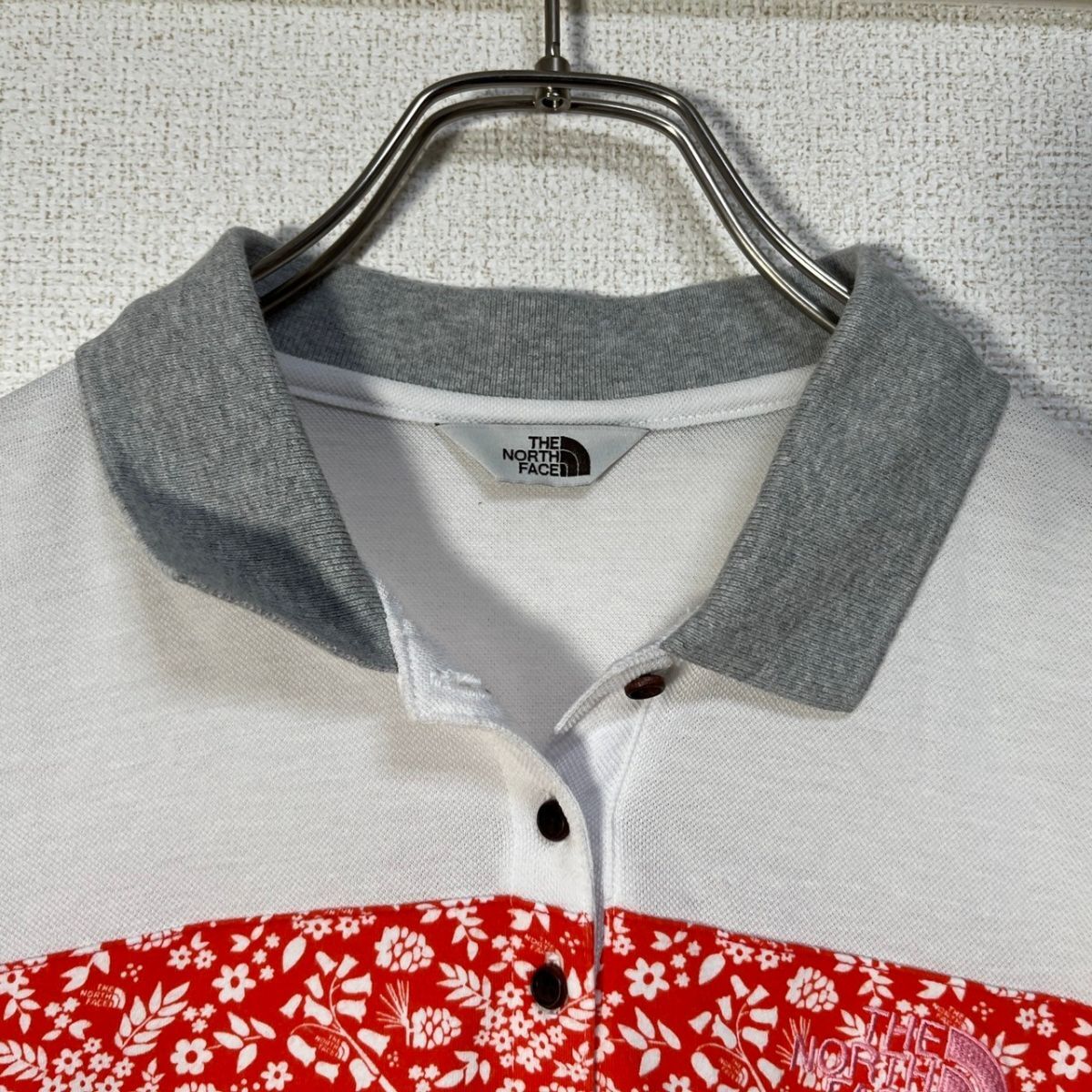 - ノースフェイス 半袖ポロシャツワンピース 刺繍 花柄 総柄 白 韓国限定Q 古着 入手困難 激レア 希少 人気 ホワイトレーベル