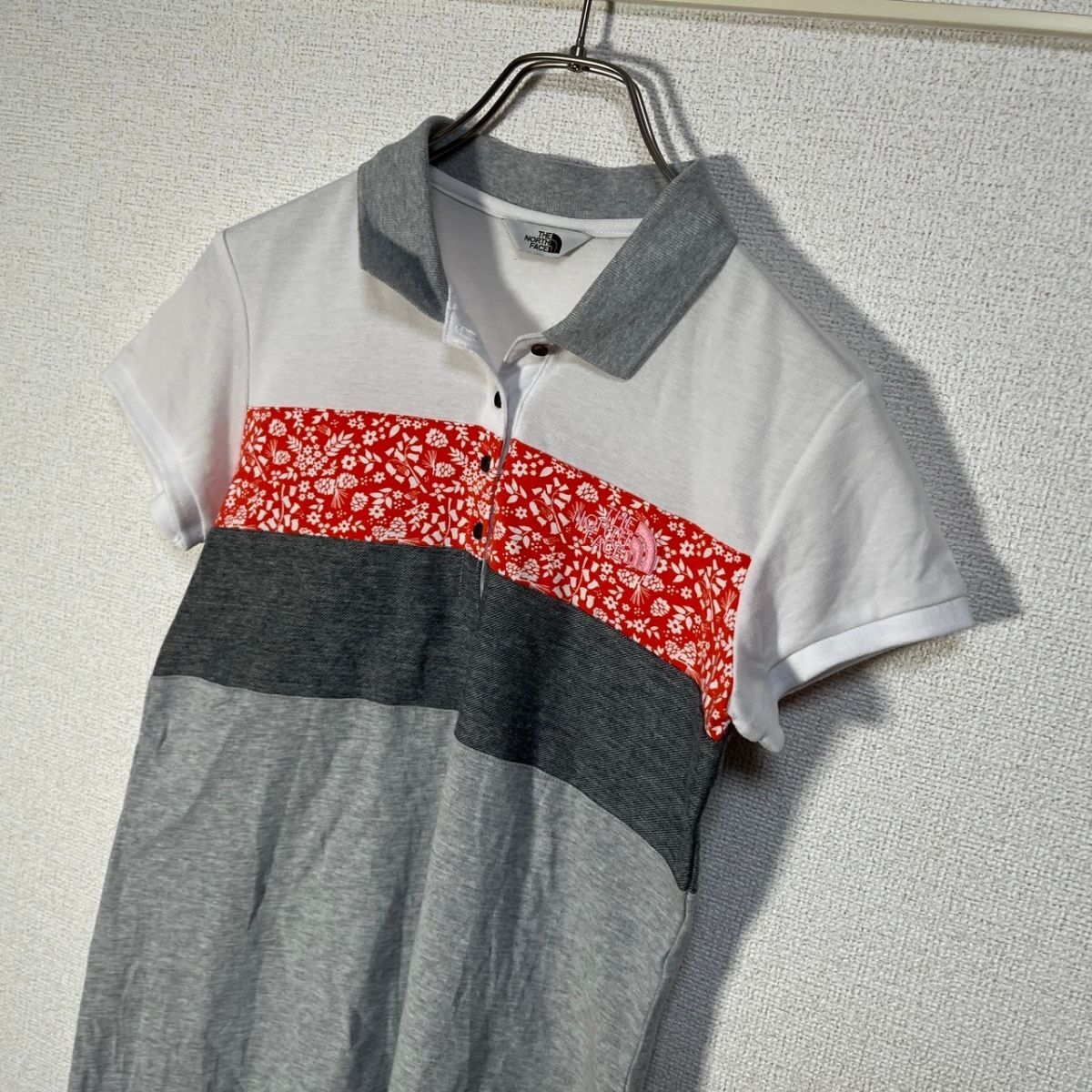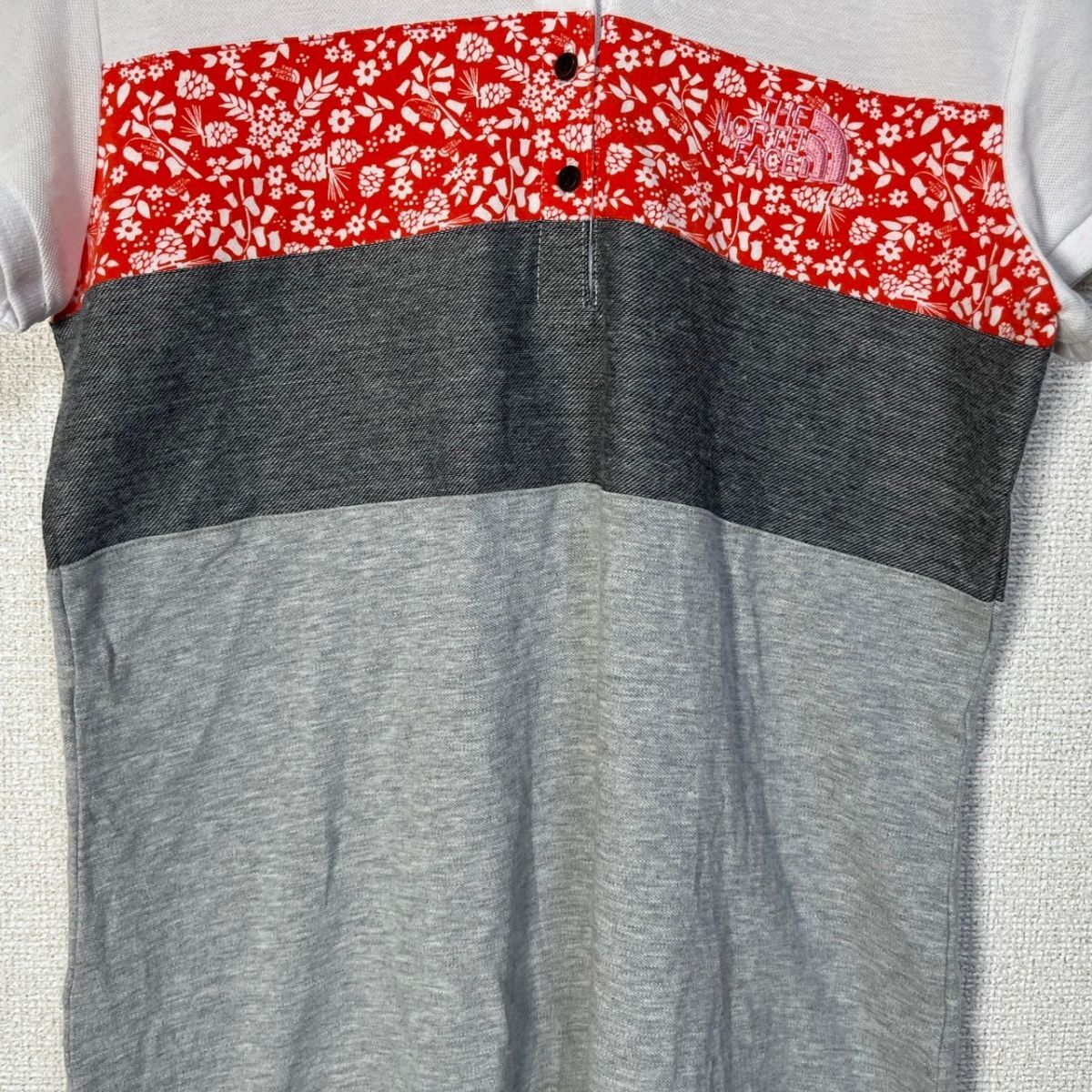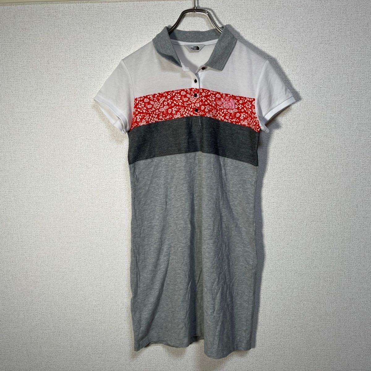 > ノースフェイス 半袖ポロシャツワンピース 刺繍 花柄 総柄 白 韓国限定Q 古着 入手困難 激レア 希少 人気 ホワイトレーベル