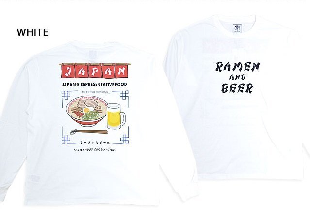 - 酔いどれラーメンロングTシャツ◆YOIDORE ホワイトMサイズ M(中ジョッキ) 834401 ヨイドレ お酒 ビール 和柄 長袖
