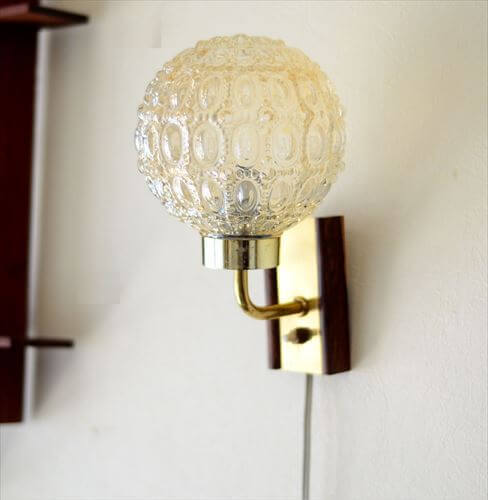> デンマーク製 B&H ローズウッドx真鍮xガラス ウォールライト 壁掛け照明 木製 北欧 ミッドセンチュリー期 ランプ アンティーク il0010