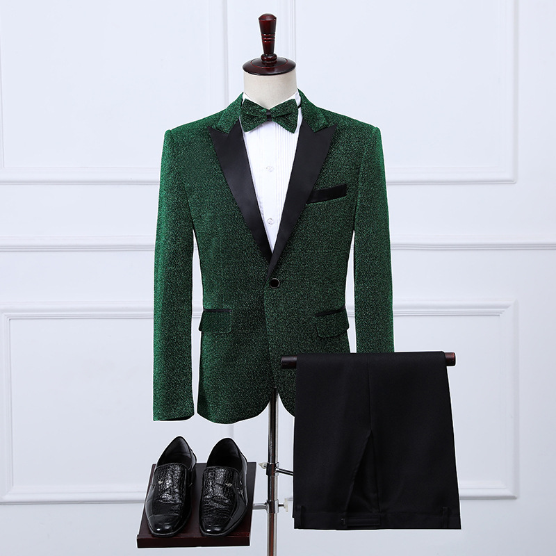> メンズ スーツ 銀ラメ入り 2点 上下セット ブルゾン タキシード王子 宮廷S M L-3XL演歌 歌手衣装舞台コスプレ/グリーン
