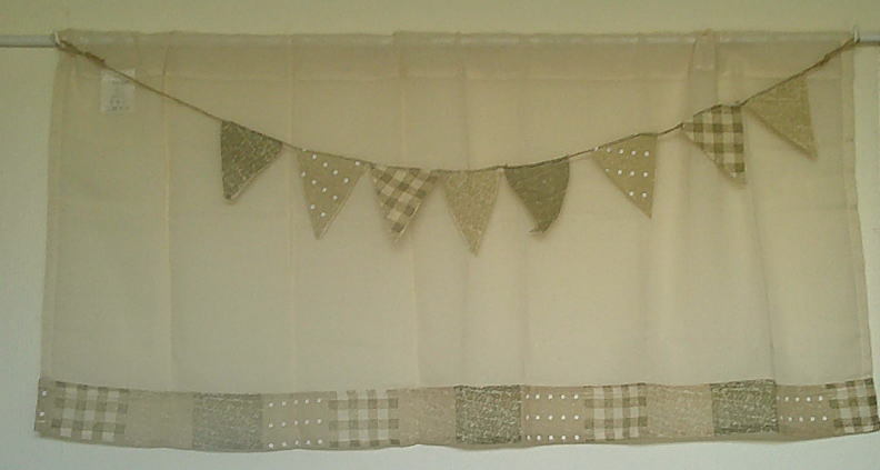 - 綿カフェカーテン100x45cmガーランド/ベージュ/yuni<人気 小窓 出窓 目隠し トイレカーテン>