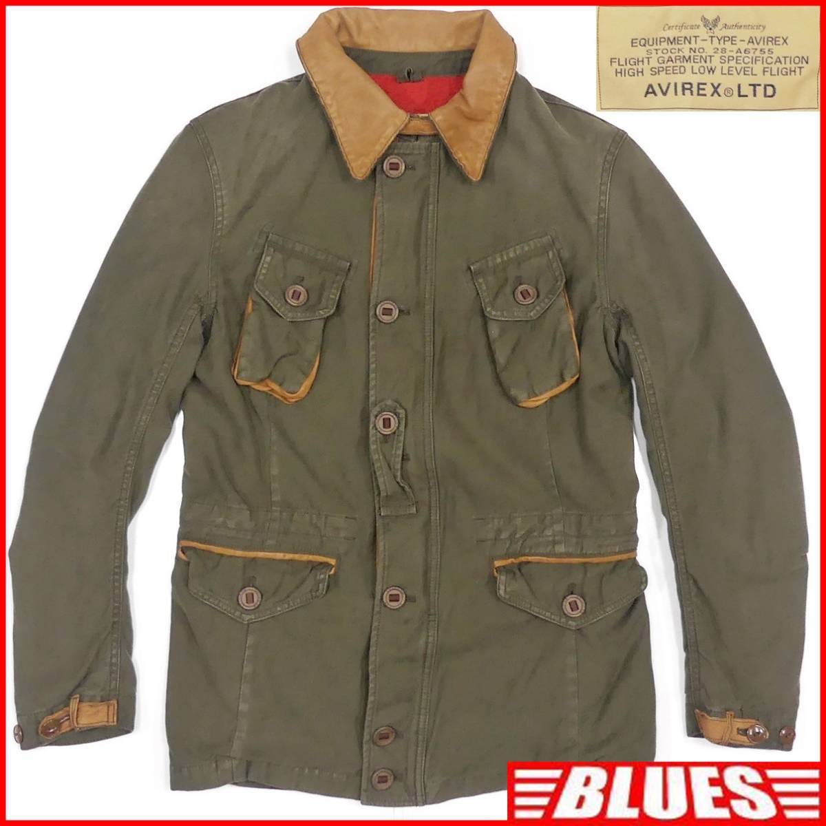 - 即決★AVIREX★メンズM ミリタリージャケット アビレックス モスグリーン カーキ レザー切替し アウター ジャンパー ジャケット
