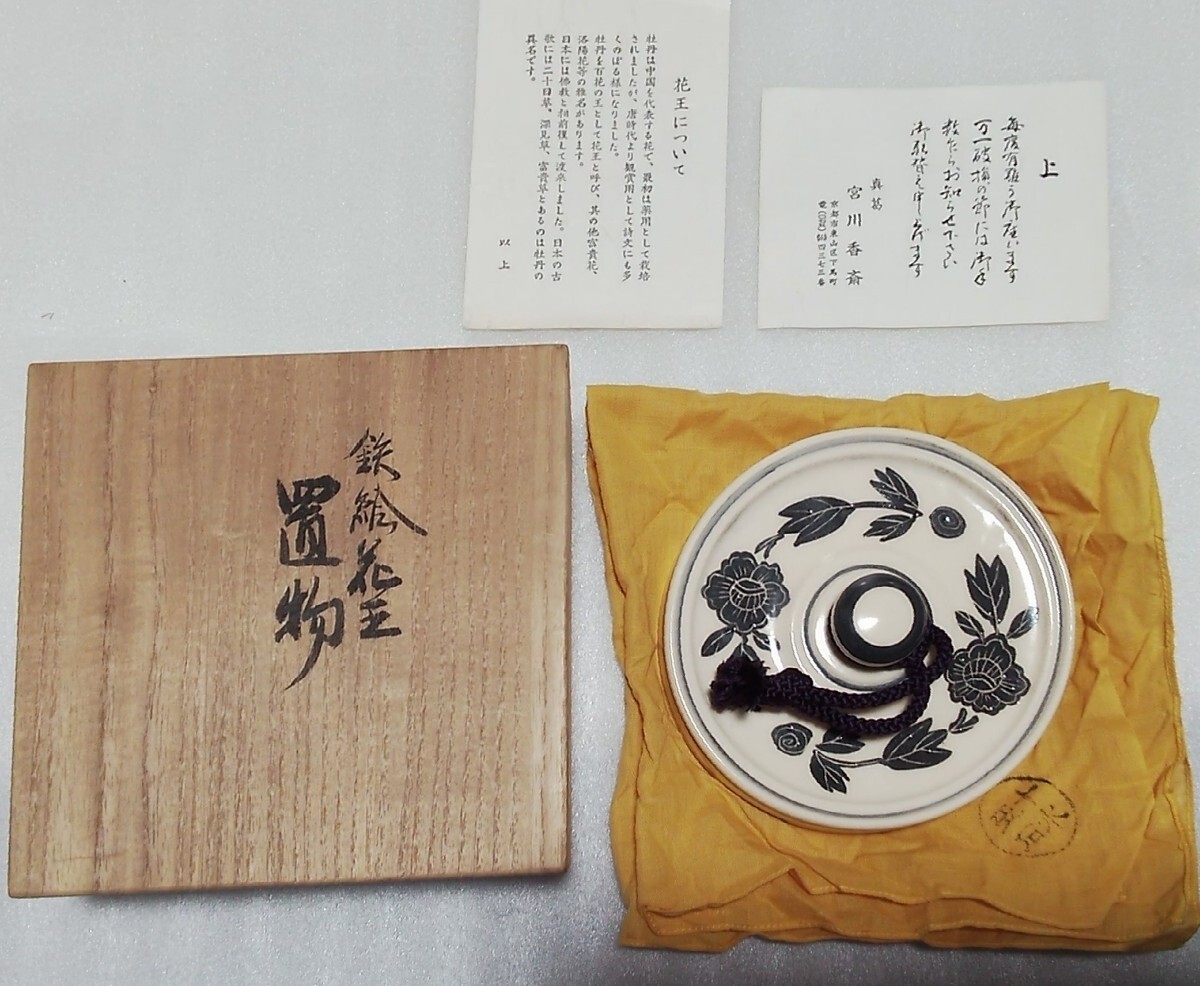 - ★ 初だし 鉄絵花王 置物 真葛 宮川香斎 共箱共布栞付き 文鎮 ペーパーウエイト
