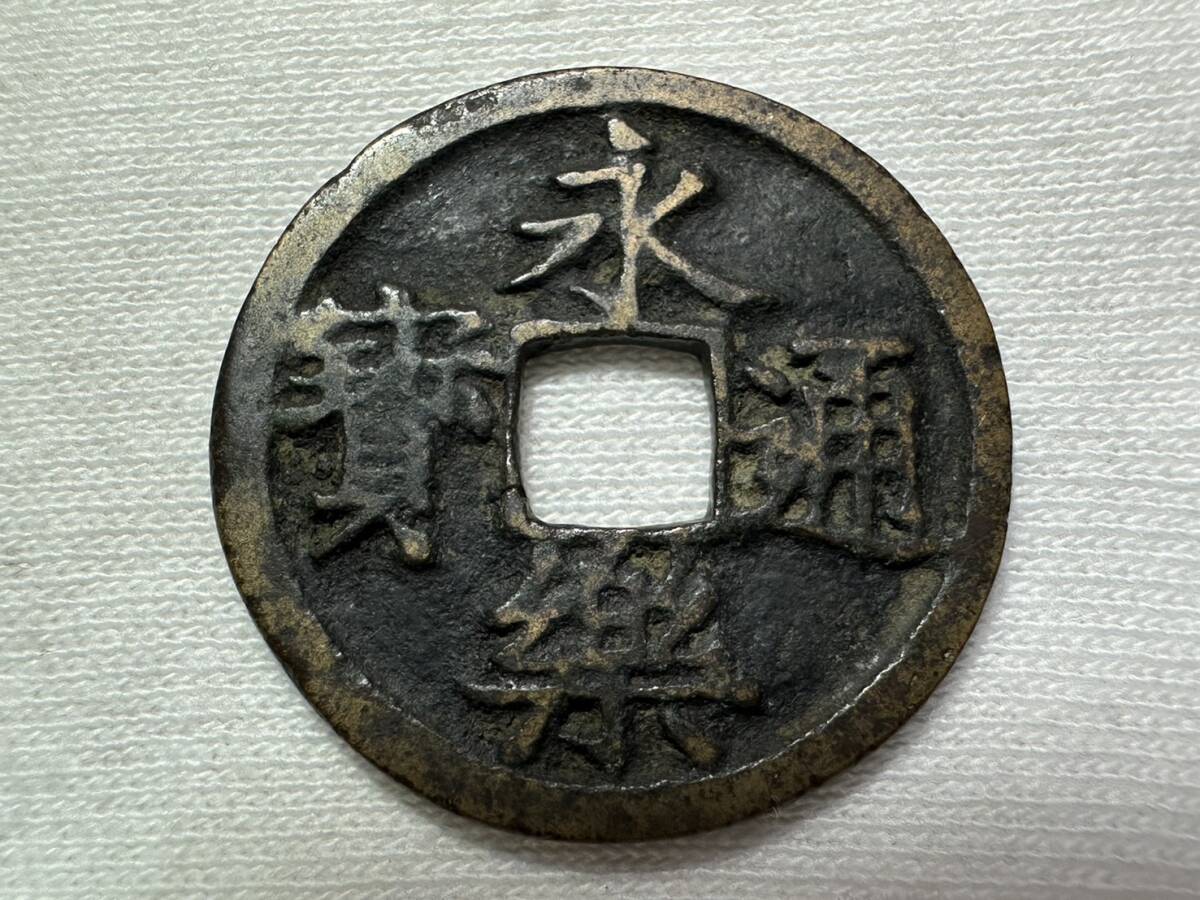 - ・ 古銭? 永楽通宝? 永楽通寶? ★ap7 穴銭 日本 清朝銭 穴銭 渡来銭 大陸古銭 中国 硬貨 量目 約3.74g 24.4mm 1.1mm 詳細不明