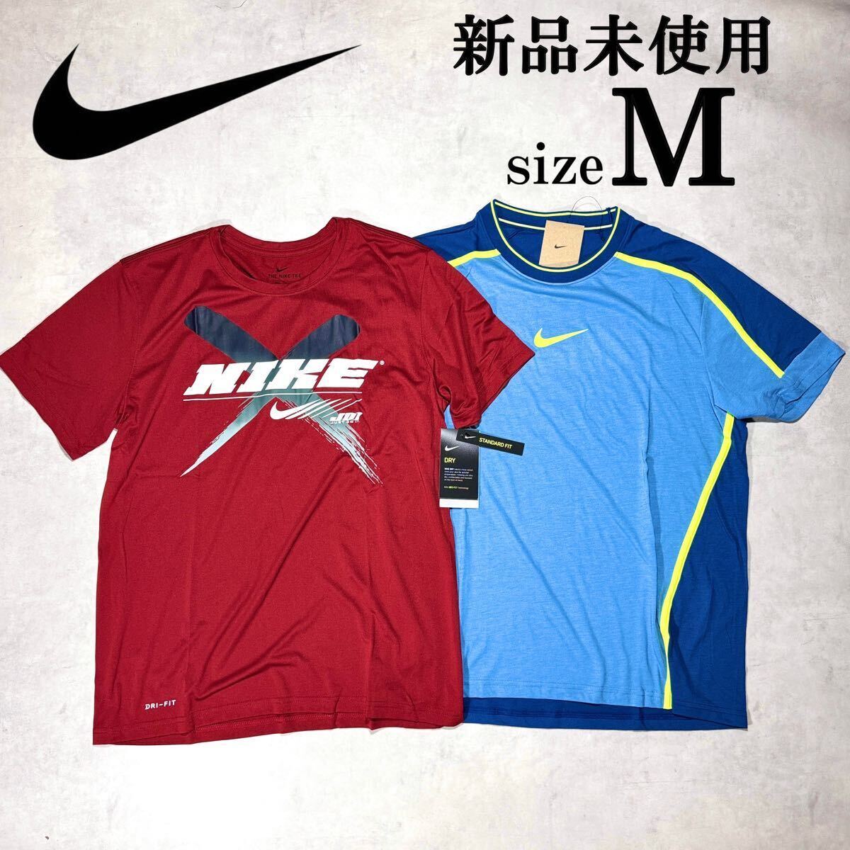 > 新品 未使用 Msize ナイキ 半袖 2枚セット ドライフィット 伸縮性 ランニング トレーニング 赤 青 2枚 まとめ 春 夏 速乾 ストレッチ
