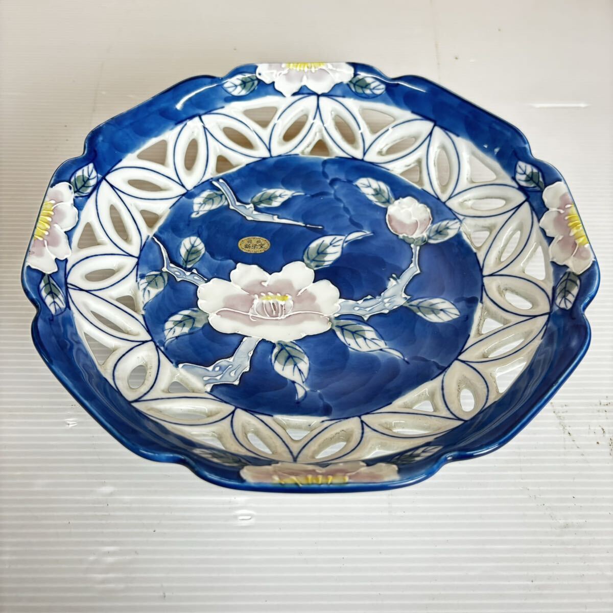 - s0824601 洋食器 皿 カフェ インテリア 大皿 食器 飾り皿 和食器 色絵 割れ物 陶器 花柄 デザイン お菓子入れ 客出し用 事務所 中古品
