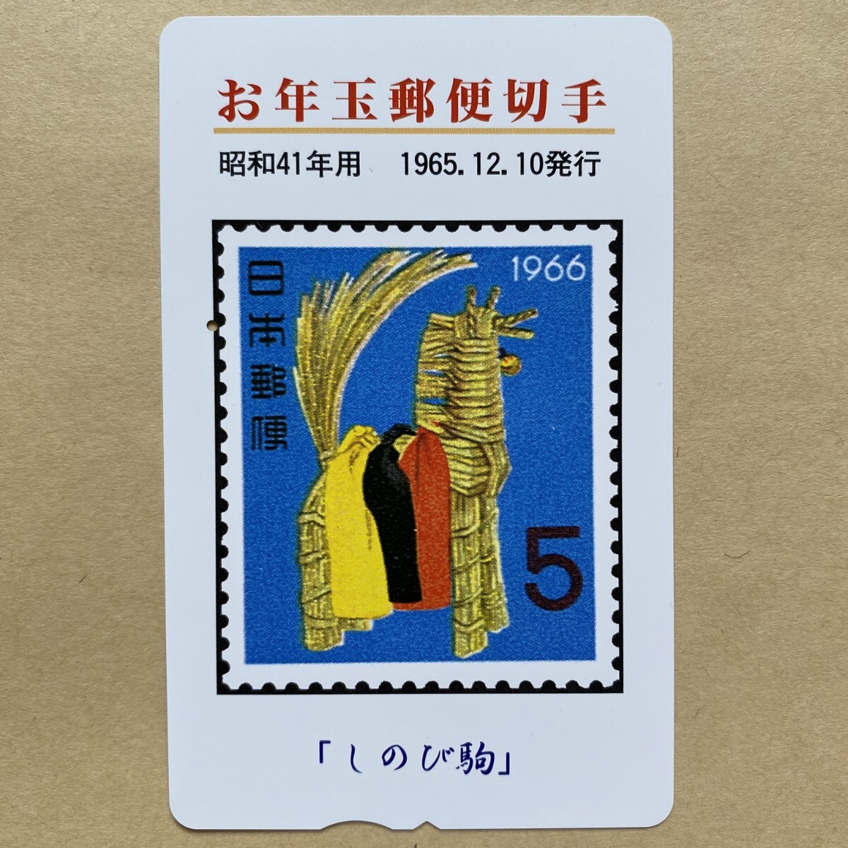 - 【使用済】 ふみカード 北陸版 お年玉郵便切手 昭和41年用 1965.12.10発行 「しのび駒」